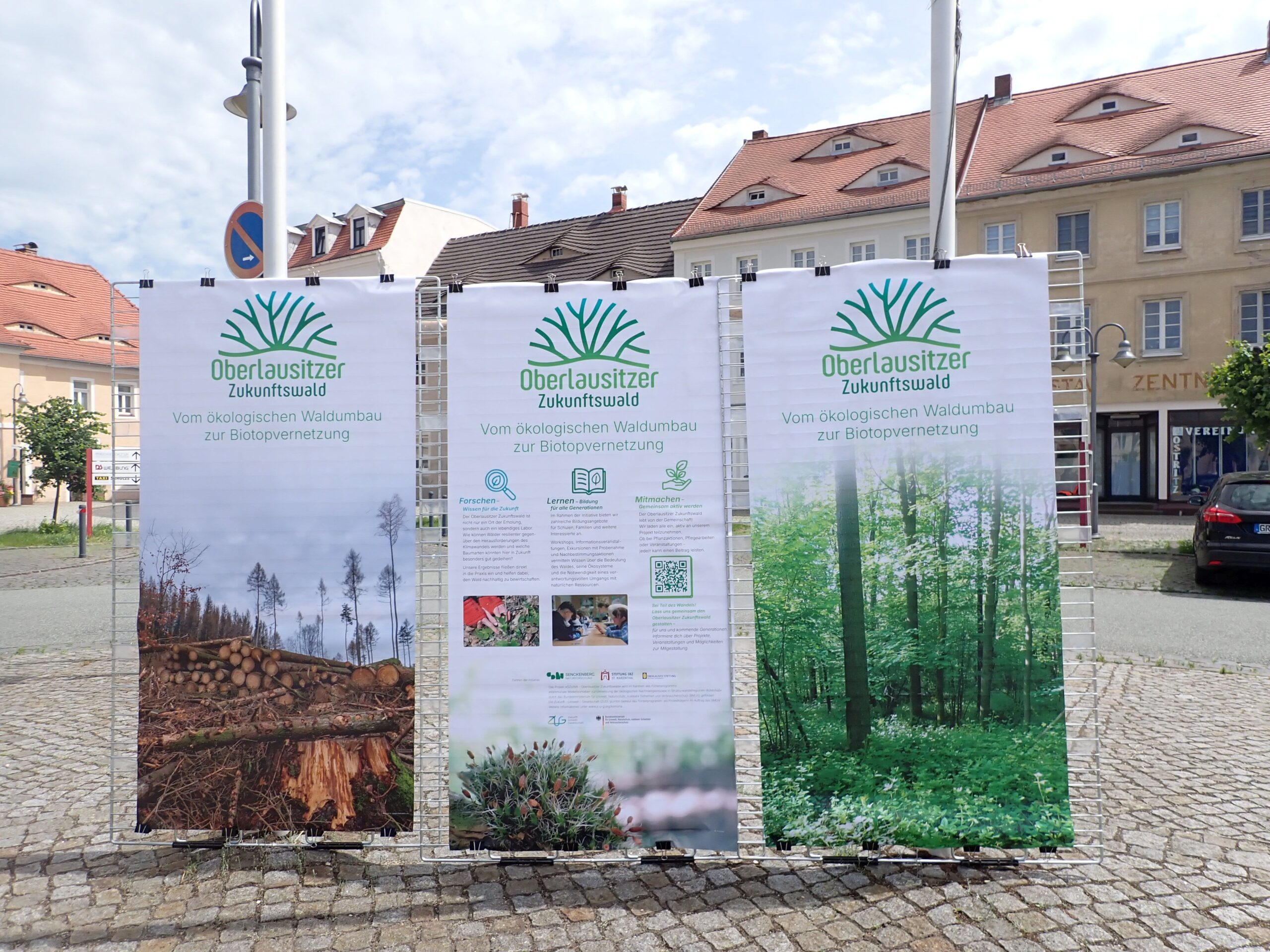 Ein Schwerpunkt bei der Werbung für die Initiative Oberlausitzer Zukunftswald wurde naturgemäß in Ostritz selbst gelegt, da sich hier die Kern-Projektflächen befinden und auch der Projektpartner IBZ St. Marienthal ansässig ist. Im Jahresverlauf wurden zahlreiche Möglichkeiten genutzt, quasi „vor der Haustür“ auf die Initiative hinzuweisen, so z.B. durch das Aufstellen von großformatigen Bannern im Rahmen der Bewerbung beim landesweiten Wettbewerb „Unser Dorf hat Zukunft“. Hier hatte sich Ostritz bis in die Endrunde qualifiziert und wurde im Juni von einer Jury besucht. Die Vorstellung beim Ortskirchenrat und ein Infostand auf dem Wochenmarkt gehörten ebenso zu den Aktiviäten wie die Beteiligung beim Weihnachtsmarkt Ostritz.