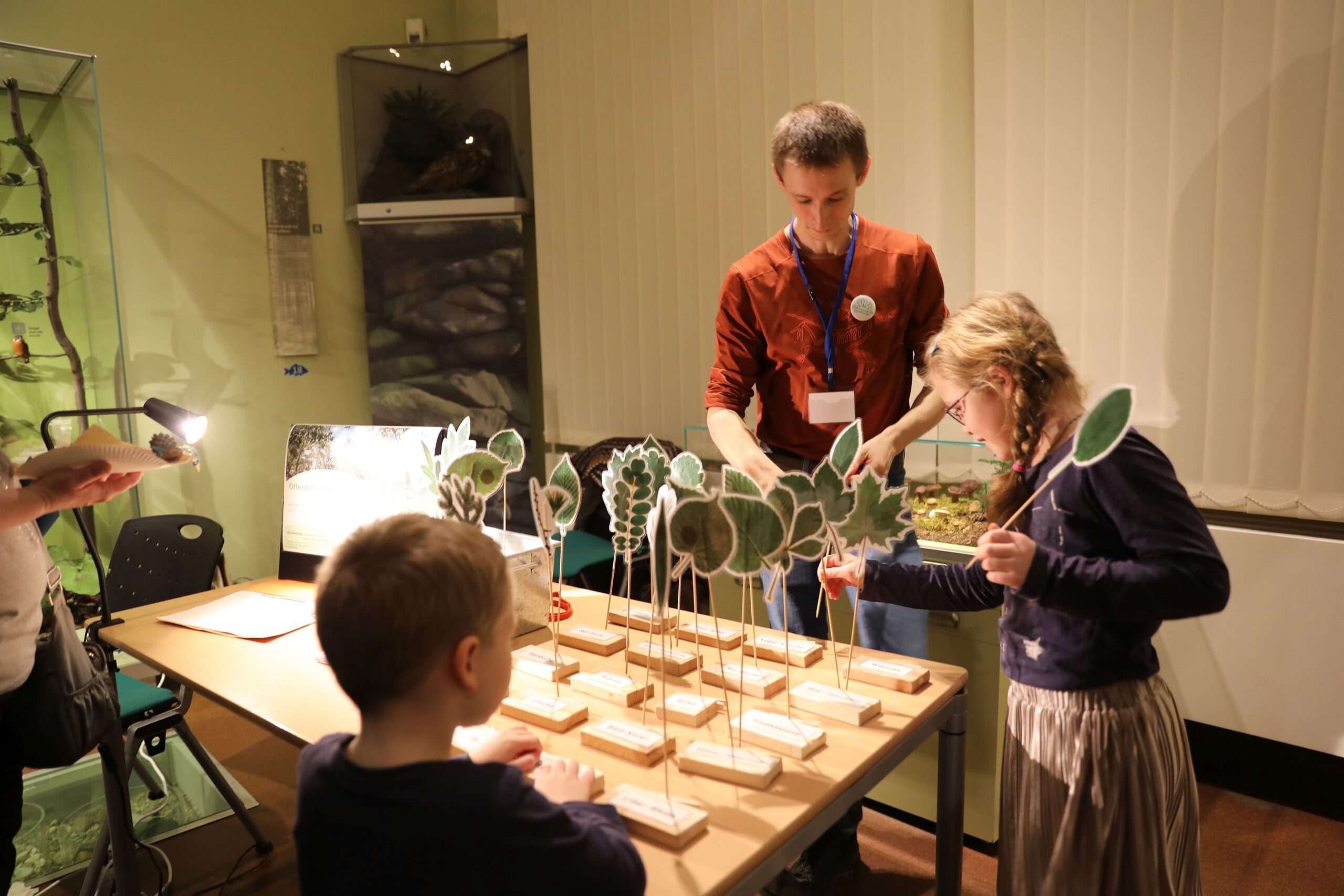 Kleine und große Besucher raten beim „Abenteuer Wissenschaft“ am 20.09.2025 eifrig, welche Blätter zu welcher Baumart gehören. © Volker Otte