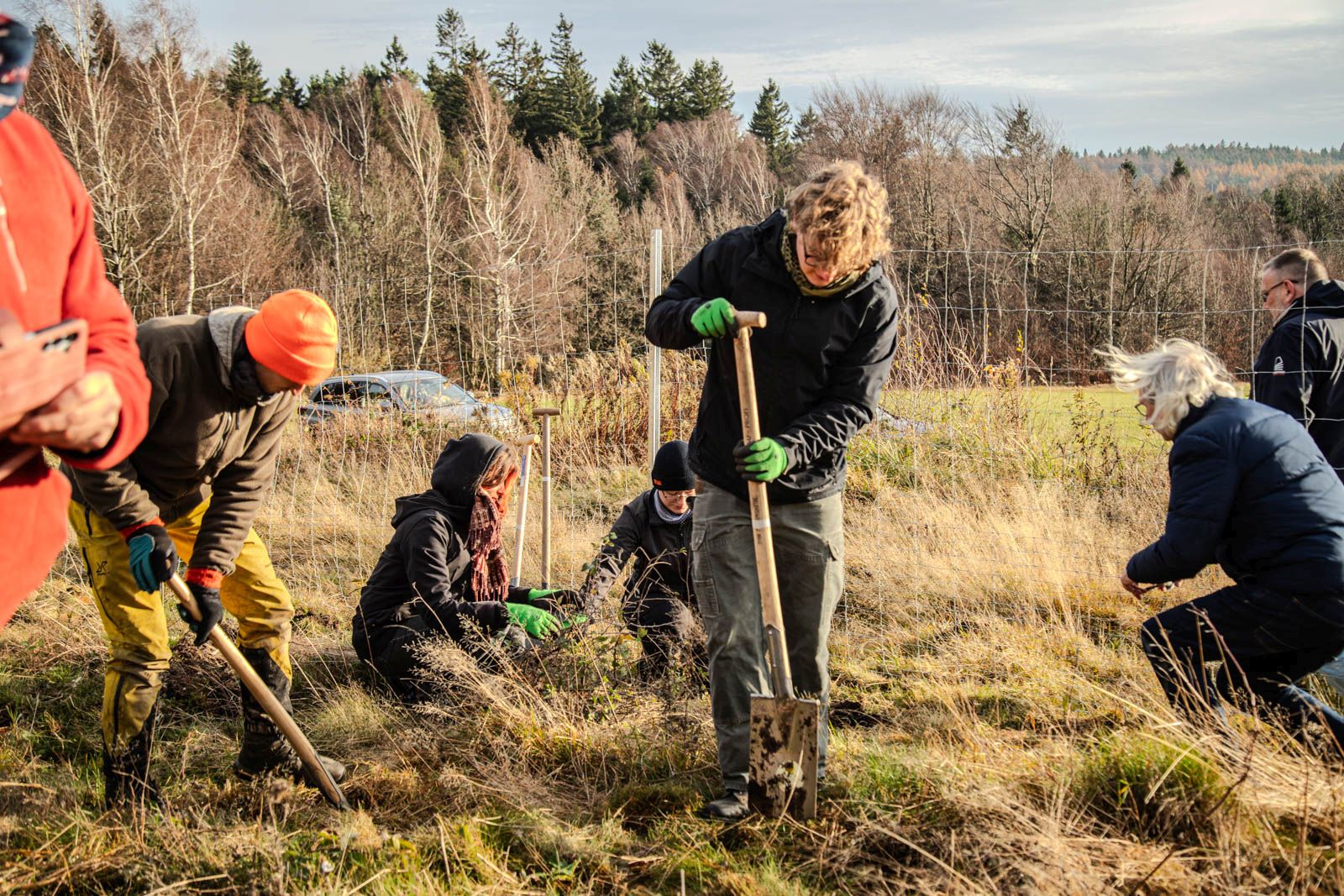 Studenten/-innen der Hochschule Zittau/Görlitz bei einer Pflanzaktion im November im Zittauer Gebirge. © Helga Zumkowski-Xylander